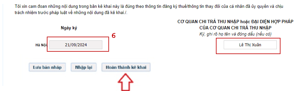 Bước 6:Điền “Ngày ký” và điền tên giám đốc doanh nghiệp vào mục “Người đại diện pháp luật”.