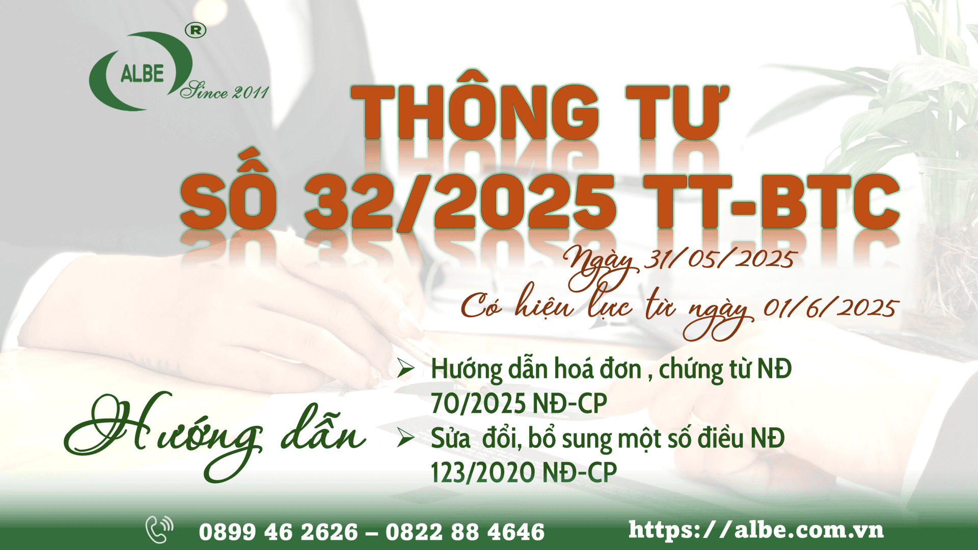 27 tháng 10 năm 2025 THÔNG TƯ SỐ 32/2025 TT-BTC ngày 31/05/2025 có hiệu lực từ ngày 01/6/2025 hướng dẫn hóa đơn, chứng từ NĐ 70/2025 NĐ-CP và sửa đổi, bổ sung một số điều NĐ 123/2020 NĐ-CP ... Xem thêm