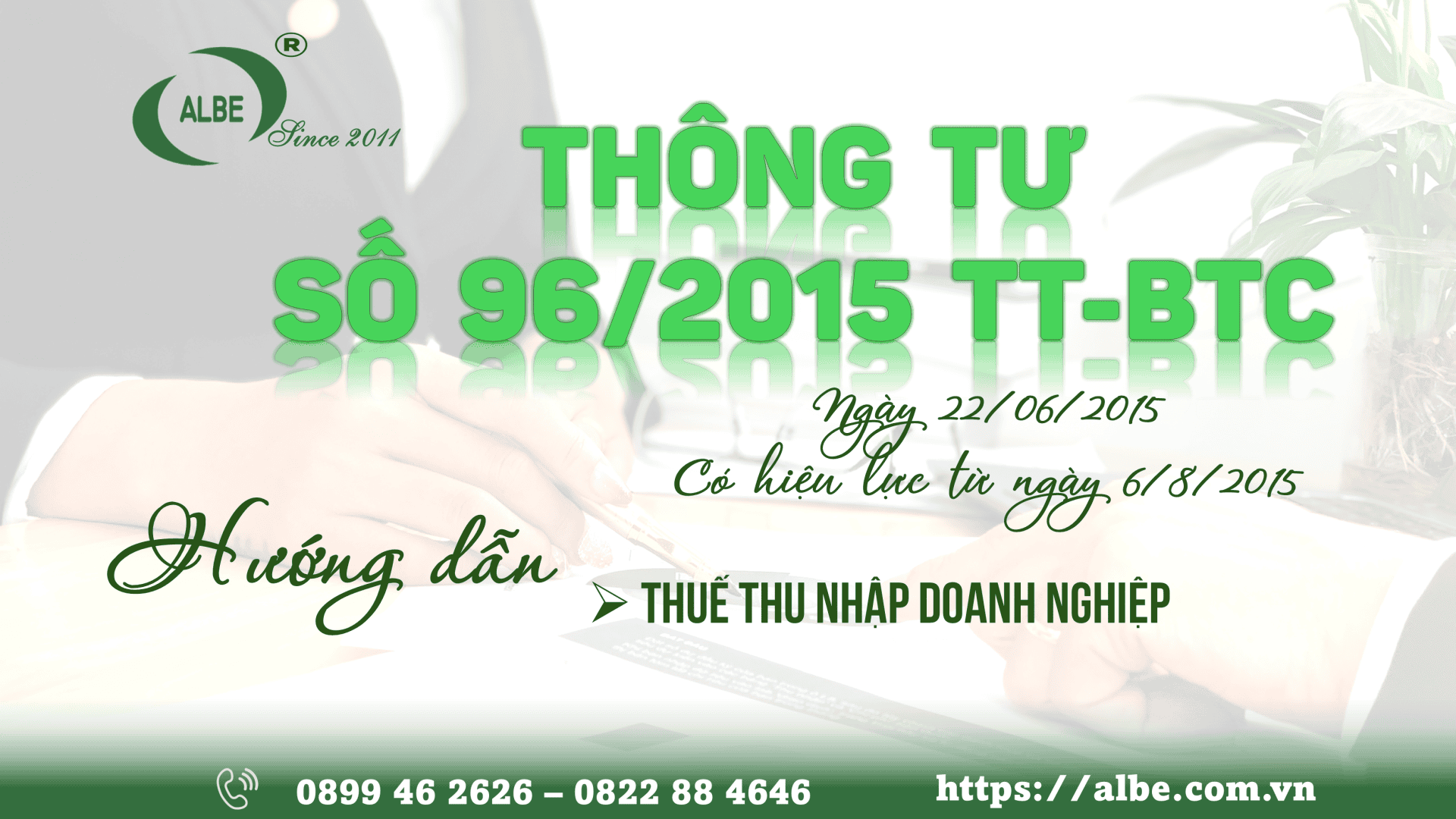 27 tháng 10 năm 2025 THÔNG TƯ 96/2015 TT-BTC ngày 22/06/2015 có hiệu lực từ ngày 6/8/2015 hướng dẫn thuế thu nhập doanh nghiệp Xem thêm